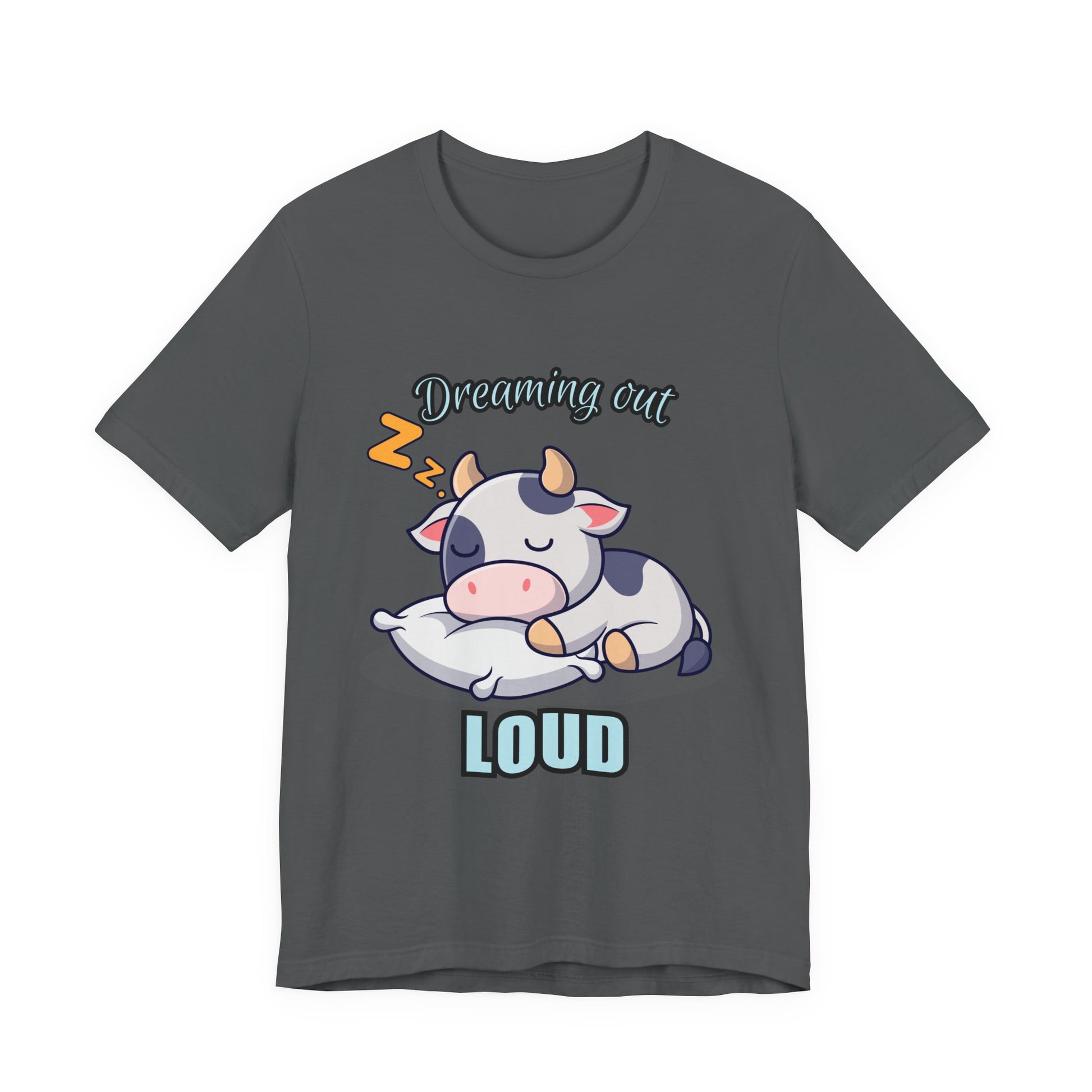 Dreaming Out Loud Cow Tee - Cute Animal Shirt, Graphic T-Shirt, Gift for Cow Lovers, Funny Sleep Shirt, Relaxing Apparel