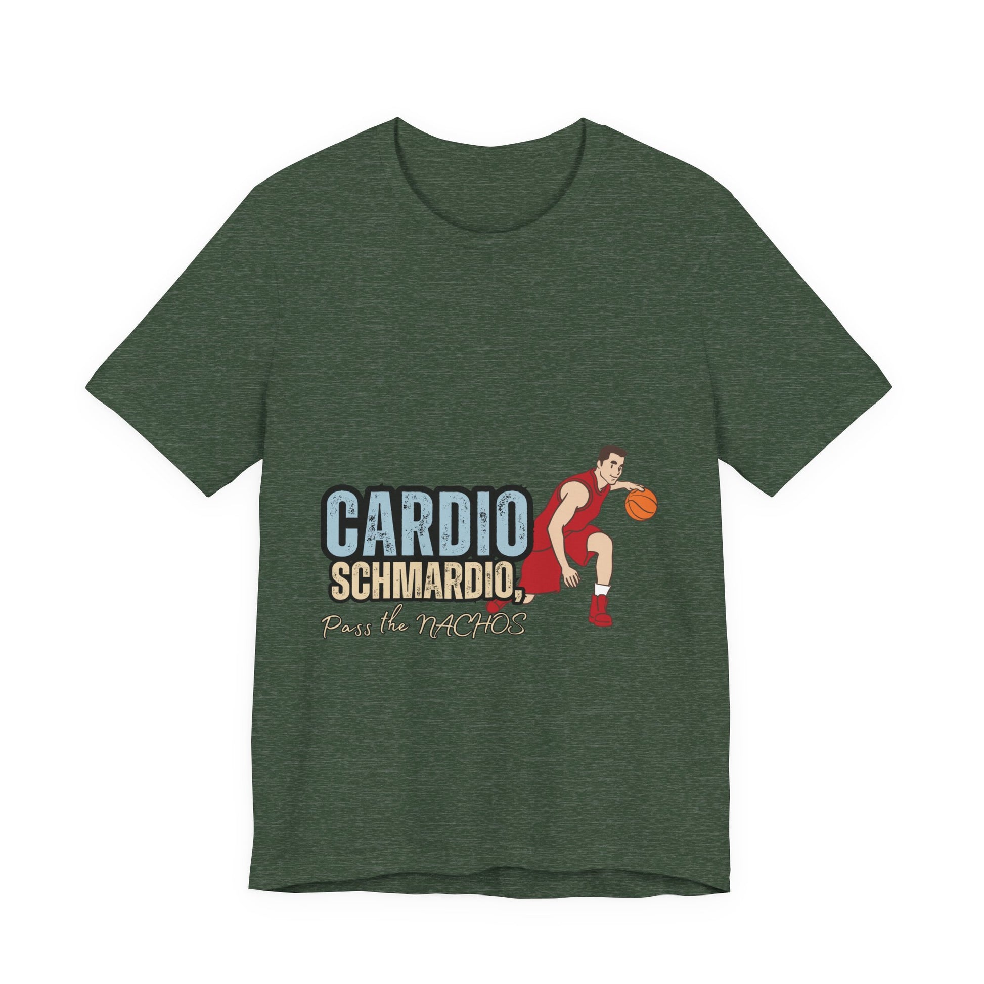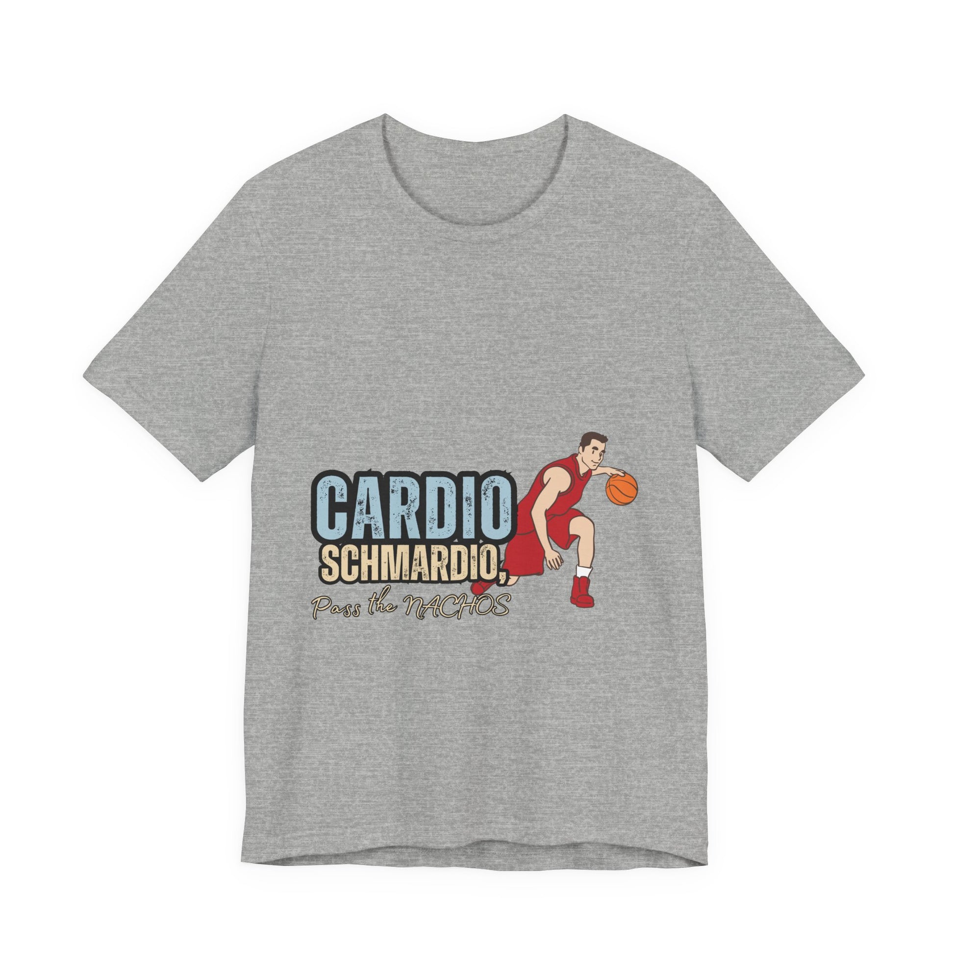 Funny Basketball Tee: "Cardio Schmardio!" Play the Nachos, Unisex Jersey Short Sleeve T-Shirt, Sports Enthusiast Gift, Gym Humor Shirt
