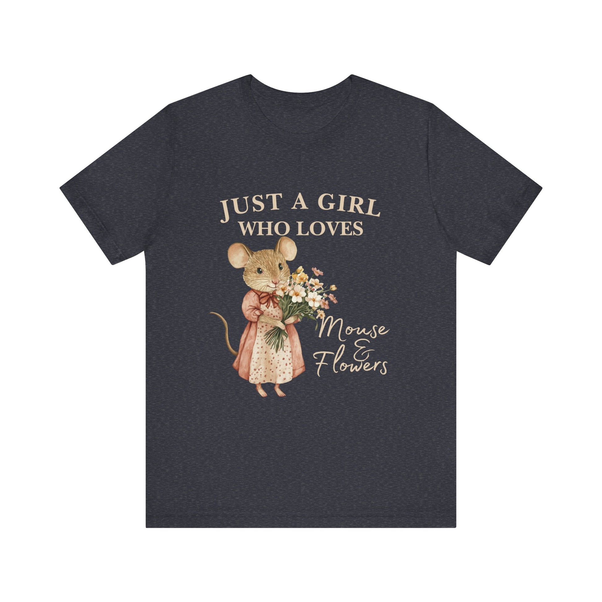 Just a Girl Who Loves Mouse & Flowers Tee, Cute Animal Shirt, Floral Graphic Tee, Gifts for Her, Birthday T-Shirt